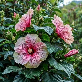 Гибискус «Иден Бьюти» — это воплощение нежности и элегантности. Представьте: крупные белоснежные цветки, словно облака, с нежным розовым румянцем в центре и едва уловимым зелёным оттенком на краях лепестков, словно капли росы на изумрудной траве. Этот гибискус создан для того, чтобы стать центром внимания в вашем саду и дарить ощущение покоя и безмятежности. Его красота завораживает и вдохновляет на создание райского уголка на вашем участке.
