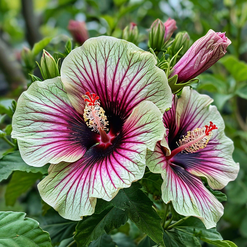 - Белый цвет с розовой серединой и зелёным оттенком по краям: главная особенность этого сорта — его нежная и изысканная окраска. Цветки гибискуса «Иден Бьюти» имеют чистый белый цвет, который является идеальным фоном для нежного розового румянца в центре цветка. Лёгкий зелёный оттенок по краям лепестков придаёт цветку свежесть и оригинальность.